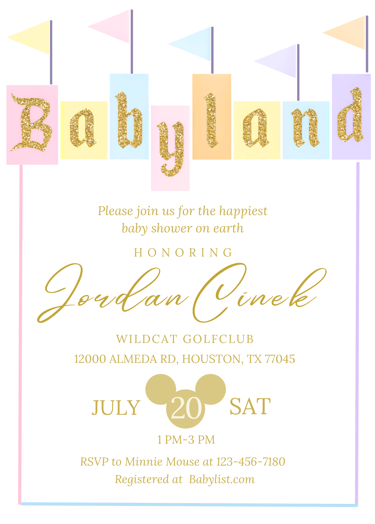 Disney-themed baby shower brought to life with custom signage and whimsical décor.